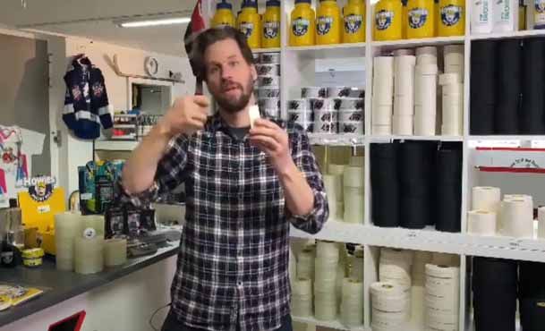Flo von HockeyBros bei der Demonstration von Howies Hockey Tapes.